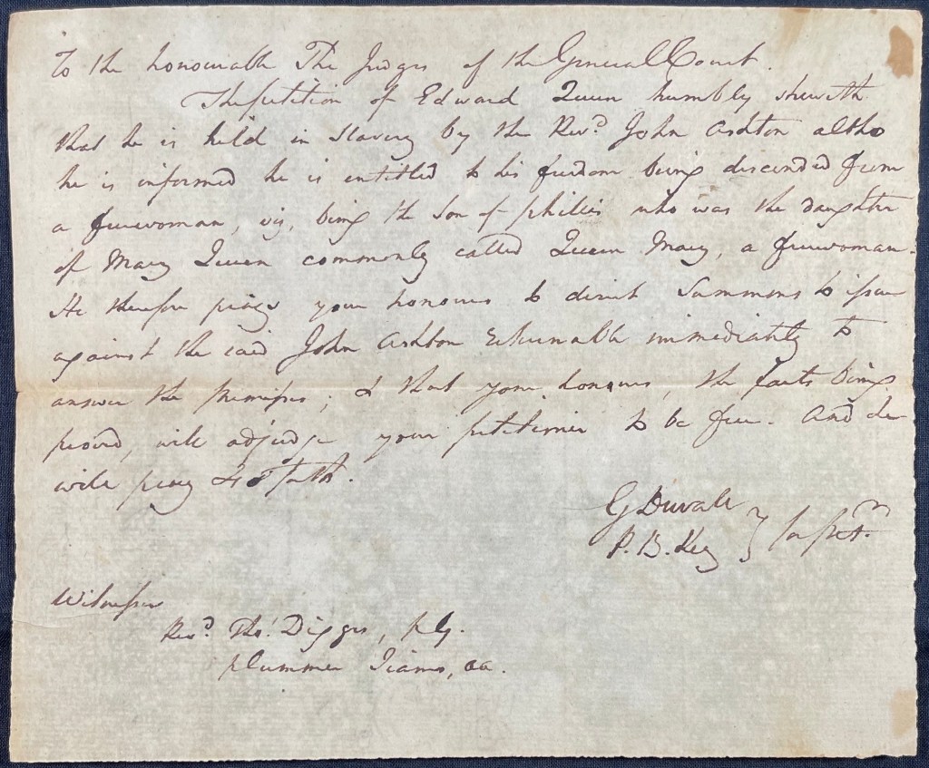 In the late 1700s, the Queen family sued the Jesuits for their freedom on basis of their descent from Mary Queen, a free woman who was illegally enslaved.